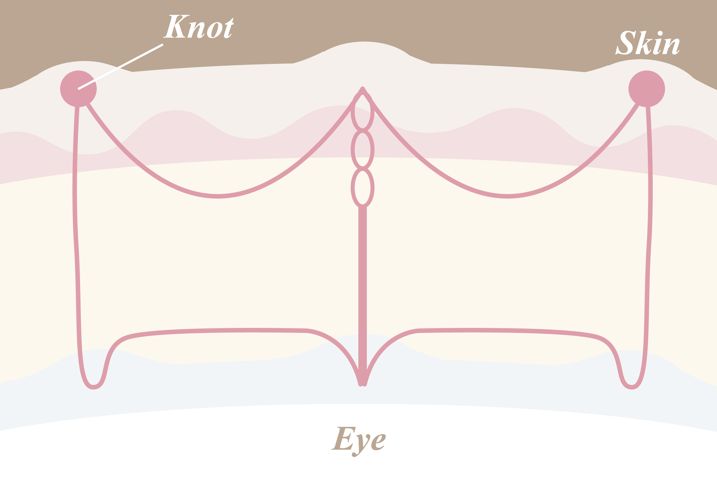 This method involves inserting and crossing two threads in a square shape to replicate the muscular mechanism of natural double-fold eyelids, offering a strong, long-lasting hold.